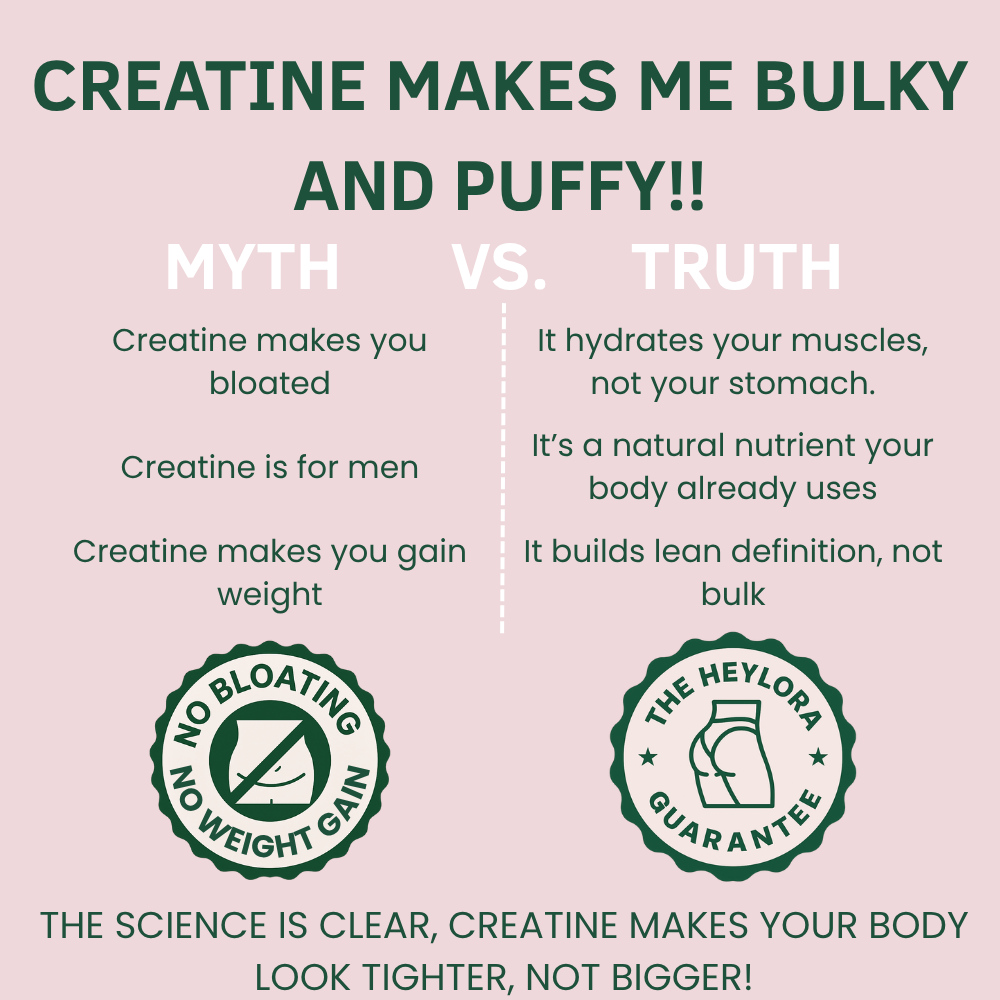 Heylora’s pure creatine hydrates inside your muscles so you look firm, lifted, and sculpted, not swollen.