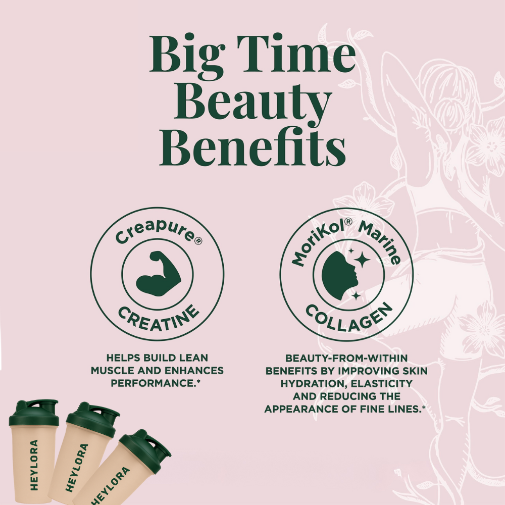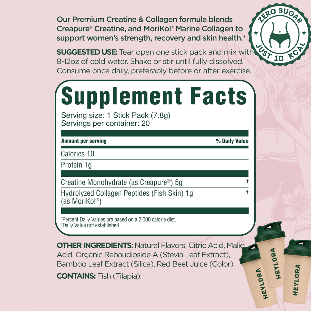 Heylora combines two proven nutrients creatine + collagen in a clean, single-serve stick that’s easy to stay consistent with.